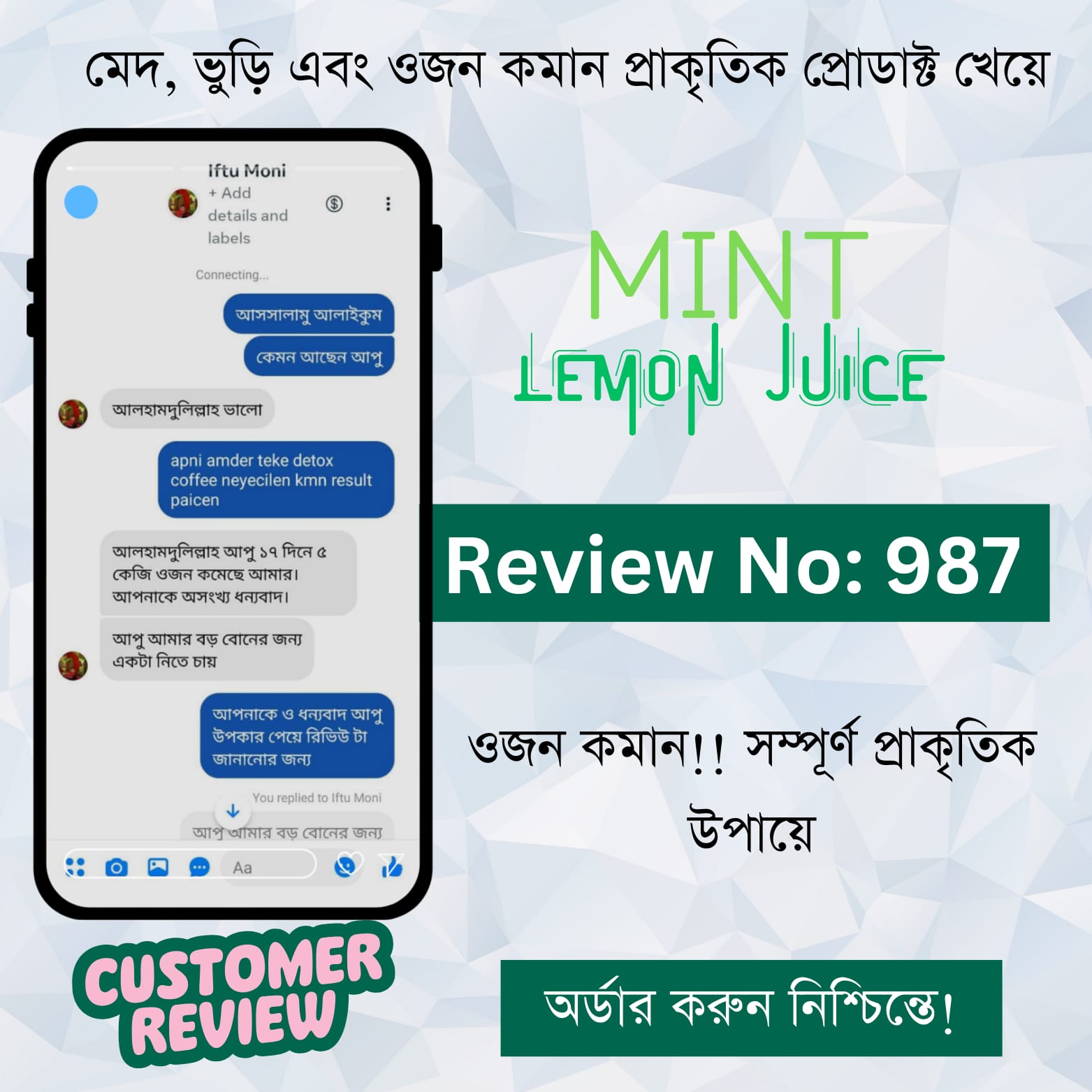 খাবার নিয়ম : এক গ্লাস কুসুম গরম পানিতে এক চা চামচ মিন্ট জুস পাউডার ভালোভাবে মিশিয়ে সেবন করুন, সকালে এবং রাতে খাওয়ার আধা ঘন্টা আগে